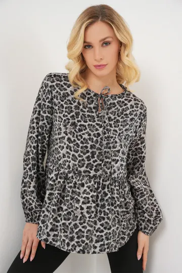 Kadın Desenli Uzun Kol Bluz 970 - Antrasit