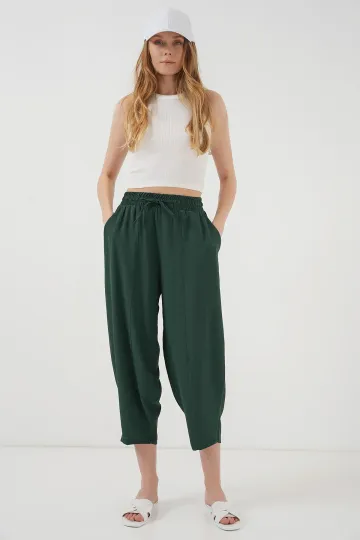 6591 Dokuma Şalvar Pantolon - Zümrüt Yeşili