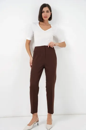 6650 Yüksek Bel Kumaş Pantolon - Kahverengi