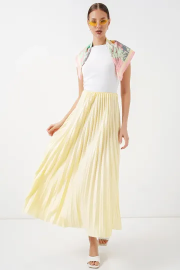 8009 Deri Görünümlü Piliseli Etek - Sarı