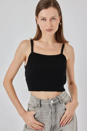 Kadın Askılı Crop Top Bluz 15934 - Siyah
