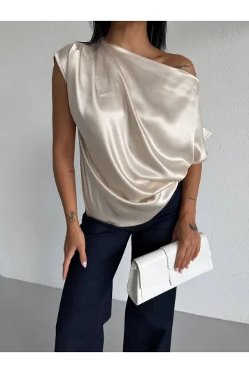 Kadın Krem Tek Omuz Asimetrik Kesim Saten Bluz HZL26W-FRY121171