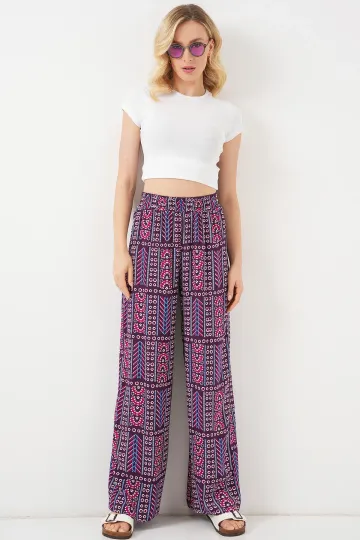 Kadın Desenli Viskon Pantolon 6749 - Mor