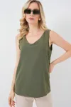 V Yaka Sıfır Kol Bluz 950 - Lacivert